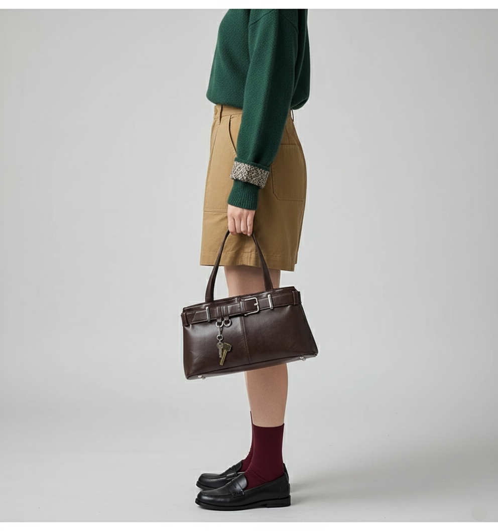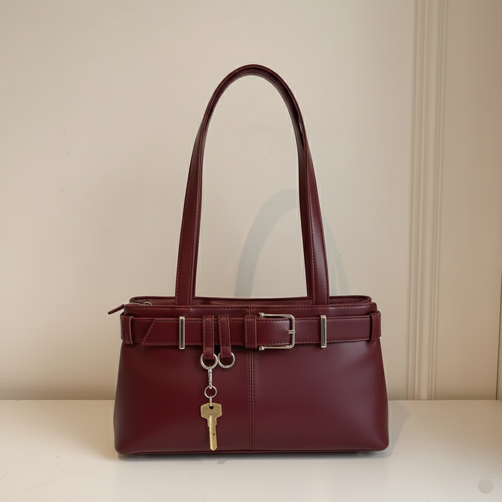 Eliza Retro Key Charm Y2K Shoulder Bag brings back early-2000s energy with its sleek belted design, glossy finish, and playful dangling key charm. Perfectly sized for your daily essentials, this structured bag adds instant retro cool to any outfit—whether it’s a uni day, a night out, or just your go-to street style vibe.